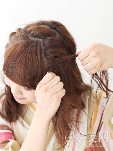 step5:將左側(cè)的辮子拉扯到右側(cè)。