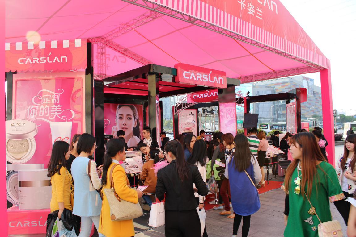 ​位于紅星通程廣場的卡姿蘭中國彩妝周的主會場,毗鄰長沙國際會展中心、湘府百貨,因而人流量大??ㄗ颂m特有的“浪漫粉”吸引了來往顧客的駐足,現場“滿300享600”的促銷力度,以及彩妝體驗令各年齡段的女性顧客踴躍參與,彩妝師們的精心講解和精湛的化妝技巧也得到了體驗者的一致肯定。