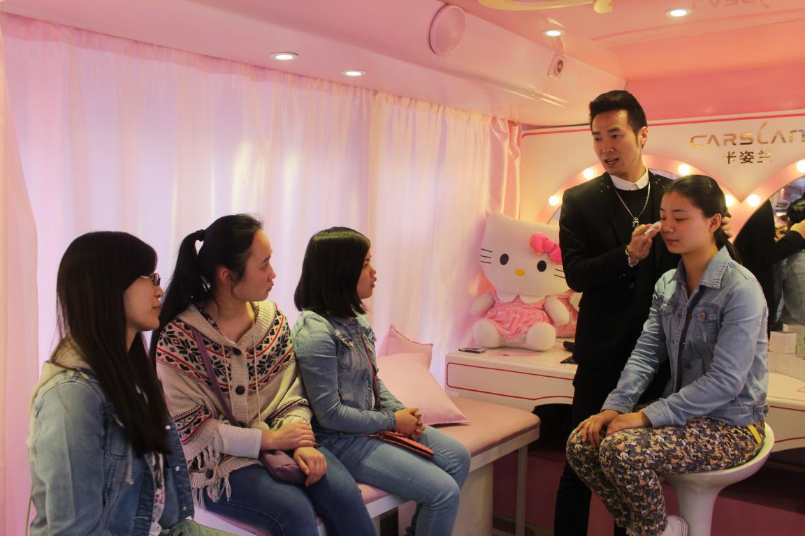 聽美妝沙龍、現場體驗美甲、掃描卡姿蘭官方二維碼后上傳照片即刻打印、參加卡姿蘭官方微信的抽獎活動……興高采烈的登上卡姿蘭移動沙龍CC巴,享受由卡姿蘭首席彩妝師高級定制的完美妝容打造,小A和小伙伴愉快的感受著卡姿蘭帶來的新奇和美麗??粗R子里美美的自己,小A和小伙伴真誠的寫下了自己的美麗心愿:要學會簡單的化妝和打造美麗臉蛋。在現場“滿300600”的鉅惠下,她們更是買到了自己中意的卡姿蘭氣墊CC霜、眼唇卸妝液等多款產品,并參與到卡姿蘭舉辦的“尋找最佳女主角”全國大型互動節目中。