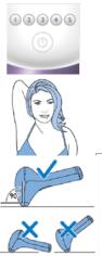 2. 處理腋下區域時,只需將飛利浦脈沖光脫毛儀完全按壓在肌膚上,綠色指示燈提示產品完全接觸肌膚,進行閃光即可;