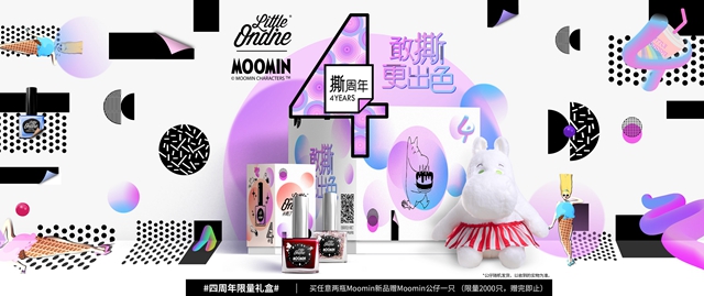 小奧汀攜手Moomin推出四周年限量禮盒,每個(gè)禮盒中含有兩款Moomin合作款指甲油,除了時(shí)髦的顏色,環(huán)保的指彩,獨(dú)具匠心的設(shè)計(jì)包裝,還可以在甲油瓶上篆刻自己的心意,免費(fèi)體驗(yàn)專屬刻字服務(wù)!這份獨(dú)一無(wú)二的體驗(yàn),也是小奧汀感謝這四年來(lái),你對(duì)它們獨(dú)一無(wú)二的恩寵。