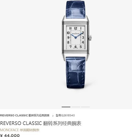 1、官網(wǎng)在售的最便宜的腕表是積家REVERSO CLASSIC 翻轉(zhuǎn)系列經(jīng)典腕表,售價為四萬四千元。