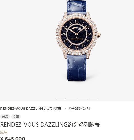2、官網(wǎng)在售的最貴的腕表是積家RENDEZ-VOUS DAZZLING約會系列腕表,售價為六十四萬五千元。