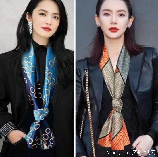 說起絲巾的各種圍法,就不得不說它的傳統的系在脖子上的圍法了,這種圍法很多變,有著各種結扣法。這種將絲巾當做項鏈的系法老少皆宜,將色澤萬千的絲巾化身為項鏈,纏繞在脖間,經典又優雅,實用又大方。