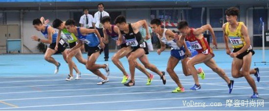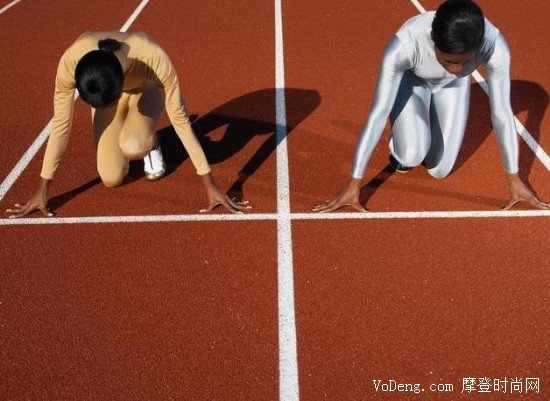 1、首先,起跑時雙手放在起跑線上,膝蓋彎曲,身體稍微向前傾斜,重心集中在前腳掌上。