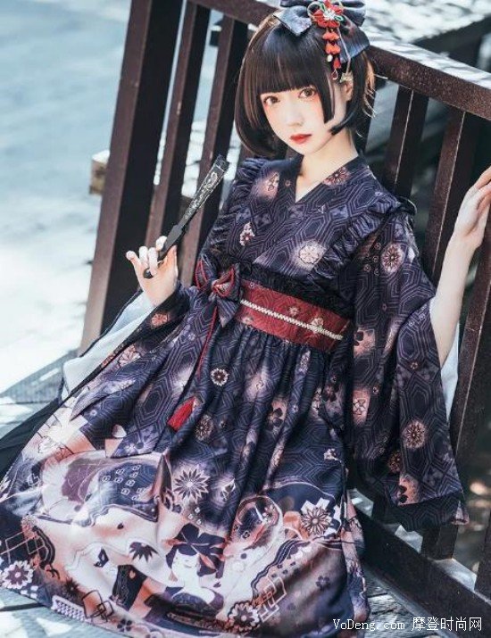 結(jié)合日本傳統(tǒng)和服與洛麗塔,日系特征明顯。