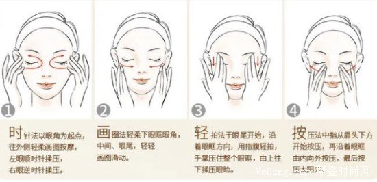 3、按摩完畢后,再用你手上的多余眼霜去按壓你臉上的幾個穴位,促進血液循環,這樣就是正確的使用步驟啦。