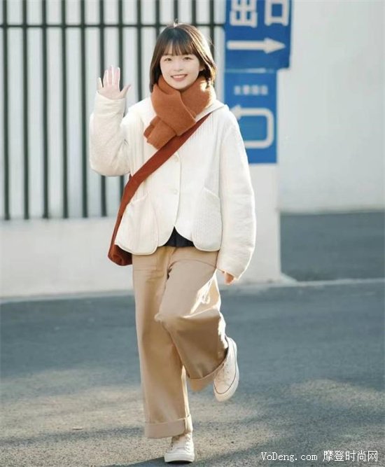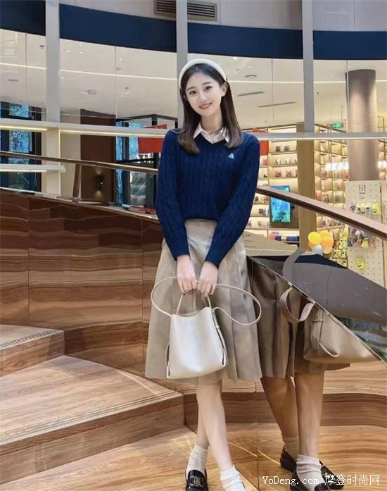 卡其色與寶藍(lán)色搭配起來就會(huì)讓你看上去像一位書香氣十足的溫柔學(xué)姐,氛圍感直接拉滿!