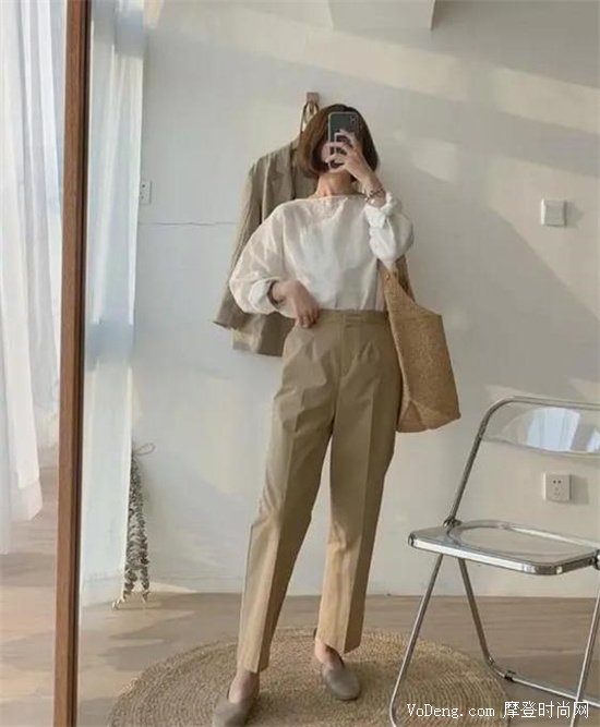 當你選擇休閑褲配拖鞋時,你就能露出腳踝,視覺上很顯瘦,你也可以挑選近幾年比較火的毛毛拖鞋與休閑褲搭配,氣質感十足。