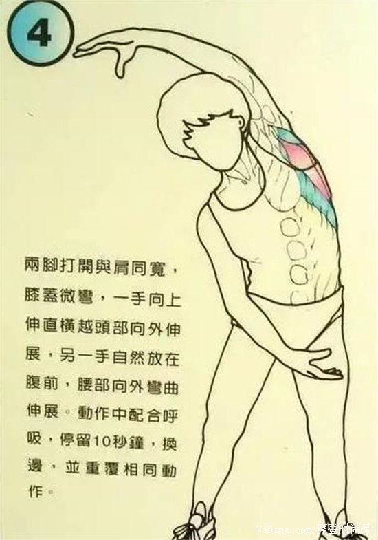 4、第四步需要你保持站立姿勢(shì),這一步很像我們小時(shí)候?qū)W的廣播體操里的伸展運(yùn)動(dòng),其實(shí)就是如此,這個(gè)動(dòng)作也能非常有效的緩解你的上肢疲勞。