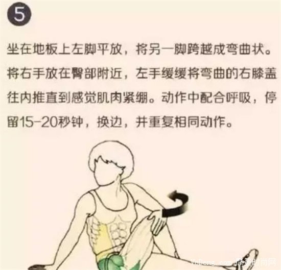 6、接下來(lái)的第六步需要你坐下來(lái),這一步動(dòng)作是鍛煉你的墩布肌肉,你能感受到你的肌肉被拉伸后的強(qiáng)烈酸爽感,但是能夠恢復(fù)正常。