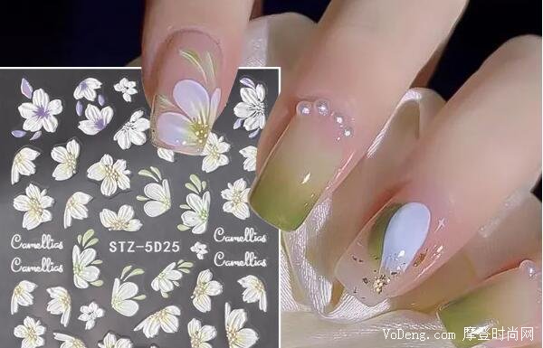 這一款非常適合喜歡小清晰風格的姐妹們,最亮眼的還是白色勾勒出的那半朵花,充分詮釋了美人猶抱琵琶半遮面的意境,綠色和白色的融合搭配,看起來充滿了生機與活力,非常顯白。