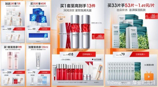 在同類用料的護膚品品牌中,珀萊雅算是價格非常親民的了,例如嬌韻詩的精華就動輒上千元,但是珀萊雅的精華三四百,還會送你一堆贈品。珀萊雅家最低價產品是小球藻面膜,二十片才38元,最貴的是它家的王牌產品珀萊雅紅寶石的套盒,四件才1089元,而且最近有活動,券后929元,加上贈品,一次性可以帶走21件護膚品,實在是太劃算了。