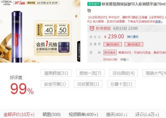 就拿它家好評之王——復顏玻尿酸導入膨潤精華液來說吧,光京東一個平臺,就能收獲99%的好評率,將近6.5萬人都覺的它十分好用。這款膨膨水添加的十倍濃度濃縮玻尿酸因子,能夠起到迅速填充皺紋、膨潤充盈、給皮膚滲透補水的作用,它就像你的專屬皮膚粉刷匠,填平你臉上的溝溝壑壑,讓你再次年輕態!