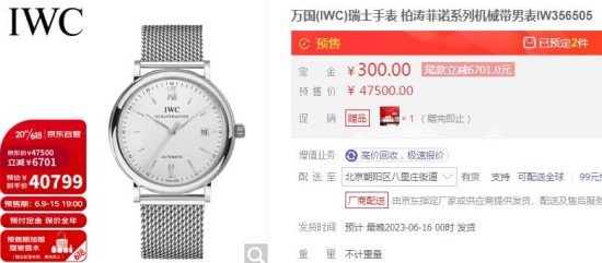 萬國牌手表由于是國際高端大牌手表,價格普遍偏高,適合腕表收藏家們選購,預算不足的朋友們就可以繞道走啦。在京東上,該品牌旗艦店中價格最高的是葡萄牙系列自動機械男表IW390210,售價106999元,而售價最低的是飛行員系列自動機械男表IW327002,售價31799元。