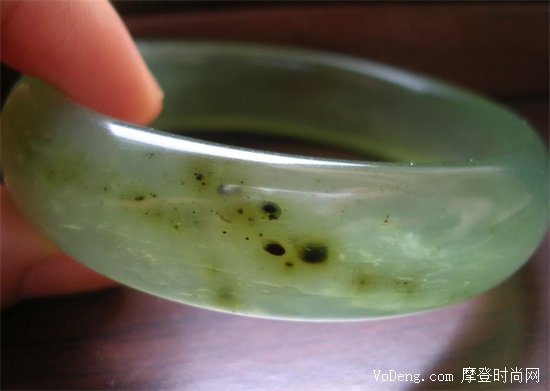 黑點屬于玉忠常見的一種雜質(zhì),我們都知道要選黑點較少的,而這個時候,我們就可以戴上手,然后轉(zhuǎn)著圈來觀察玉手鐲的佩戴效果,選擇那個看起來顏色跳躍小的就行。