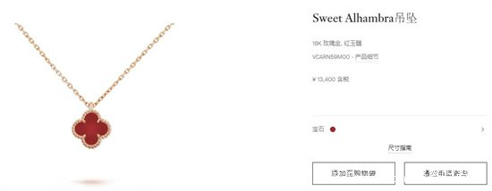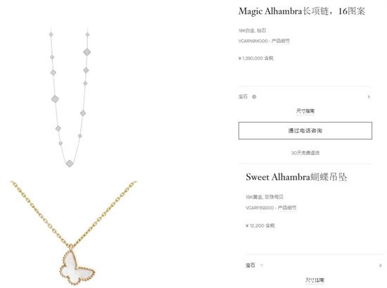 作為世界級別的高端奢牌,梵克雅寶家的四葉草項鏈也不便宜,在Alhambra四葉幸運系列中,最低價格的Sweet Alhambra蝴蝶吊墜稅后也要12200元,而最高價格的、經典的Magic Alhambra長項鏈甚至要1390000元。