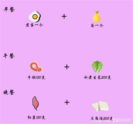 周三的早上可以從少量油之稱的煎蛋開始,最好不要吃蛋黃哦,然后配上像梨子一樣的一個水果;中午就用少許油煎一下150克的牛排,外加一拳頭水煮青菜,你可以選擇西蘭花這種蔬菜;晚上你可以吃一點紅薯的這樣的粗糧,以及喝點白菜豆腐湯。