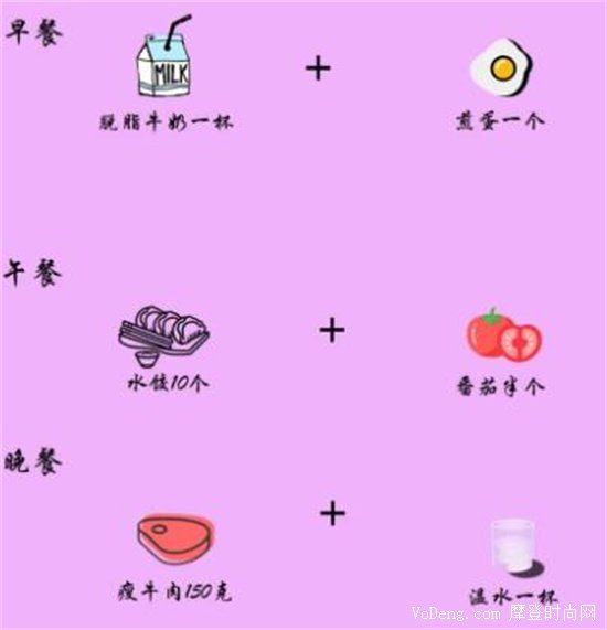 周五的話,可以從脫脂牛奶和煎蛋白開始,中午可以吃10個素水餃,以及半個有營養(yǎng)的番茄;晚上的時候就不要虧待自己了,可以煮個蔬菜牛肉湯喝喝看,記得少油少鹽哦。