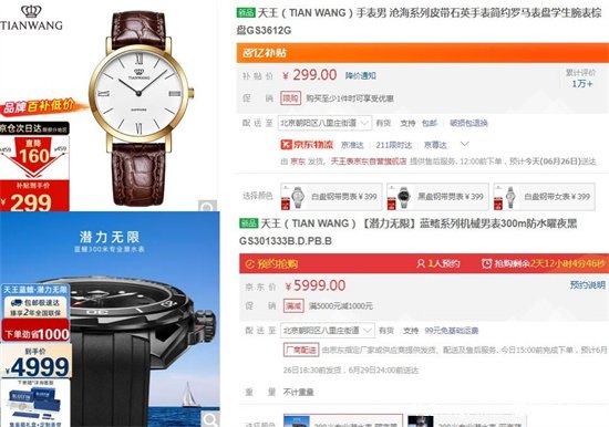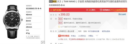 天王表家的最低價(jià)格表款是滄海系列皮帶石英手表GS3612G,售價(jià)僅為299元;而價(jià)格最高的是藍(lán)鰭系列機(jī)械男表GS301333,售價(jià)5999元。