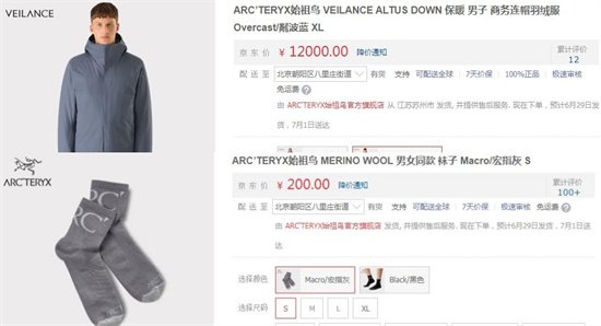 始祖鳥家最貴的衣服是男子商務(wù)連帽羽絨服Overcast/粼波藍(lán),售價(jià)12000元;而它家最便宜的是MERINO WOOL男女同款襪子Macro/宏指灰,售價(jià)200元。