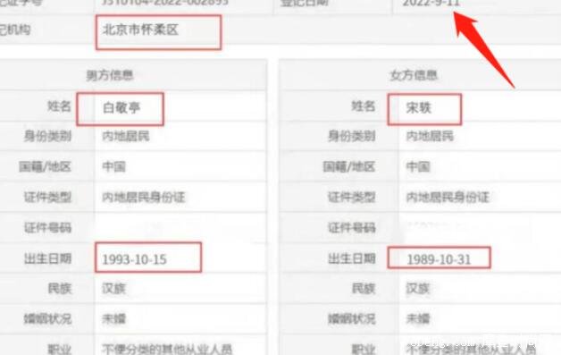 3、在被狗仔曝光兩人戀情前,大家就發(fā)現(xiàn)白敬亭和宋軼有“共同衣柜”,狗仔們發(fā)現(xiàn)宋軼私底下已經(jīng)見過白敬亭的父母了,白敬亭和宋軼同居似乎已經(jīng)成為了大家公認的事實,在今年2月份的時候兩人被拍到一起去三亞,之前也有網(wǎng)友爆出其實白敬亭和宋軼已經(jīng)在私底下領(lǐng)證了,當時登記的時間是在2022年9月份。