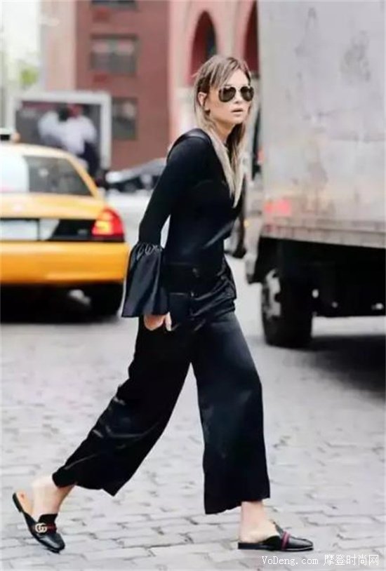 2、樂福鞋與闊腿褲的搭配簡直就是顯瘦利器!不僅能顯得你很有氣質,而且還有復古的味道!