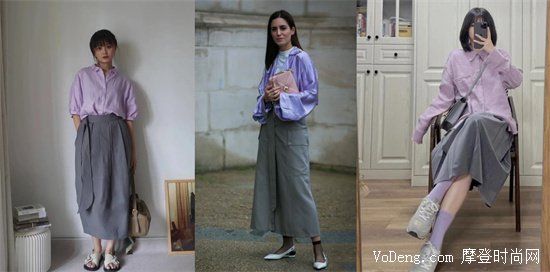 要說紫色配什么顏色好看的話,就不得不提淡灰色了。這種灰色最大的特點就是飽和度不高,與同樣低飽和的灰紫色、淡紫色搭配起來就很有韓劇味道!二者的搭配就像是韓劇女主走進了現(xiàn)實!淡灰色與紫色搭配起來,不僅溫柔顯氣質(zhì),還有一種淡淡的初戀感。同時,你也可以在配飾上面,選擇與這兩個顏色想接近的,就能使你的整體搭配更加的協(xié)調(diào)了。