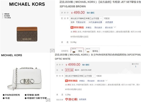 Michael Kors家最便宜的產(chǎn)品是JET SET零錢卡包32F1GJ6D0B,一個要價499元;而它家最貴的是女士PARKER系列白色單肩斜挎包 30F2S7PS6L,4999元即可到手。