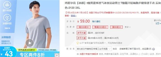 3、冰感t恤男夏季透氣冰絲運動男士T恤——59元