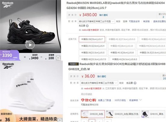 銳步的價格還算親民,最貴的馬吉拉休閑鞋GZ4204,要3490元一雙,而它家最便宜的是SOCK經(jīng)典運動吸汗舒適短襪3雙裝,才36元。