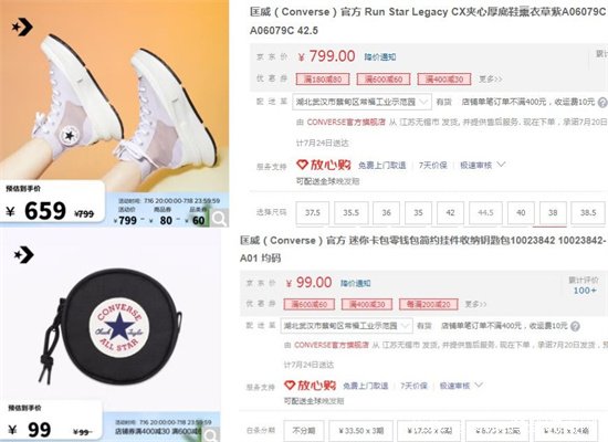 Run Star Legacy CX夾心厚底鞋是匡威家價格最高的,要價799元,而迷你卡包零錢包簡約掛件收納鑰匙包是最便宜的,只要99元就能到手了。