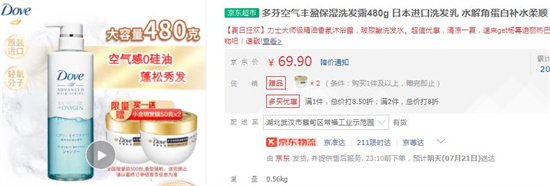 1、多芬空氣豐盈保濕洗發(fā)露480g——69.9元