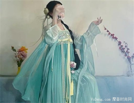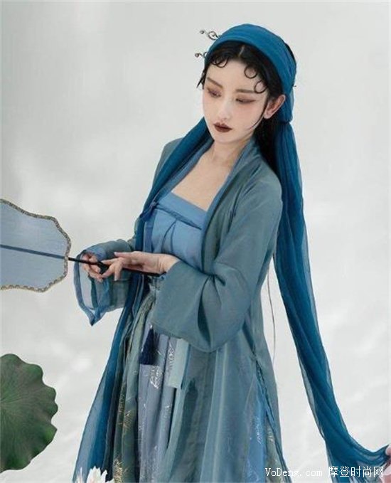 青色與墨藍色的組合經常出現在古代的山水畫中,二者的結合就非常古風味道,是漢服的常見搭配顏色。