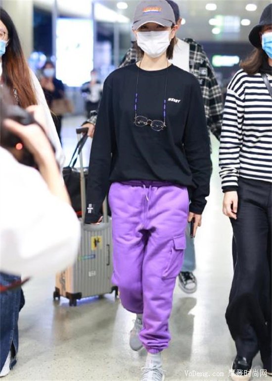 紫色的褲子與黑色的上衣搭配起來,不僅僅有著一種潮流氣息,帶來時尚感的同時,還非常減齡!