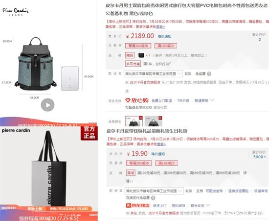 它家最貴的是男士雙肩包商務(wù)休閑男式旅行包,一個(gè)要2189元;而最便宜的是皮帶錢(qián)包禮品袋,一個(gè)要19.9元。