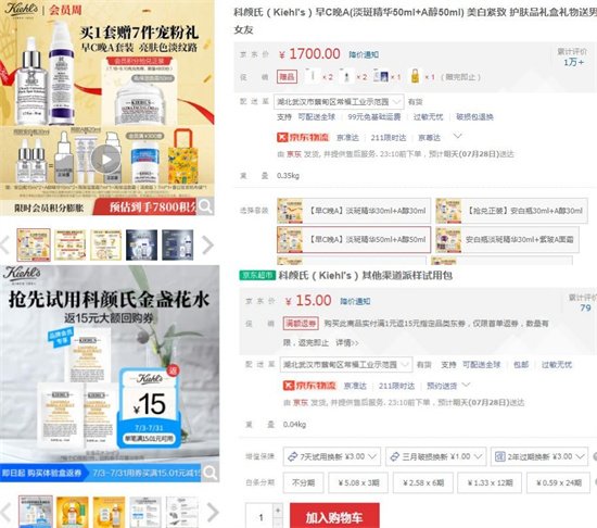 科顏氏家最貴的是早C晚A美白緊致禮盒,一套護(hù)膚品要1700元;而最便宜的是它家的其他渠道派樣試用包,一套小樣要15元。